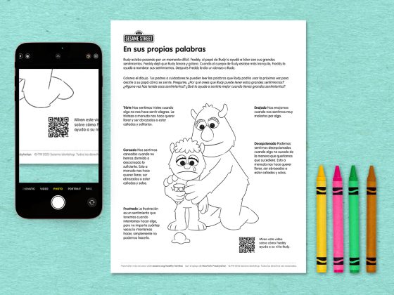 Observe y hable sobre las palabras que Rudy puede usar la próxima vez para decirle a su papá cómo se siente. Hable sobre los tiempos que ha sentido esos sentimientos e invita a su niño a hacer lo mismo.
