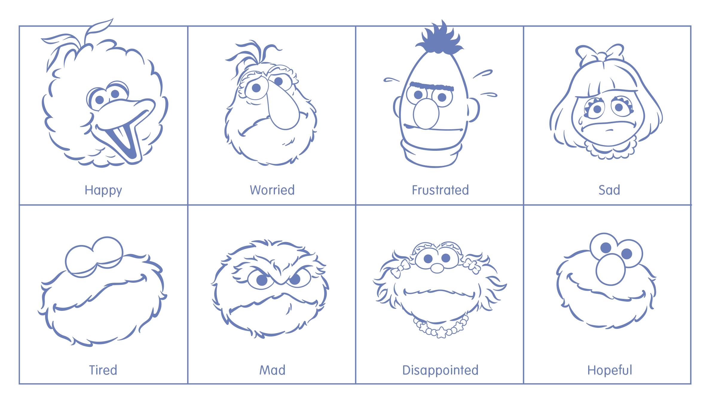 Sesame Street friends have a favorite toy or animal friend that helps them feel better when they have a big feeling. Have your child choose one of these cards to hold when they need a Sesame Street friend to help them feel better.