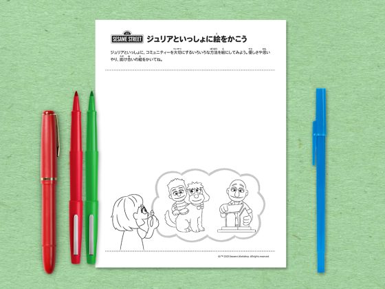 最後に、お子さん自身が思いつく、やさしさや思いやり、助け合うの方法を絵に描いてみましょう。