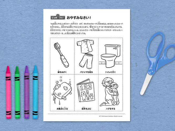 「寝る前のやること」をまとめたオリジナルポスターを作ろう。